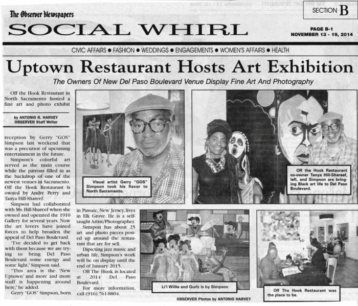 I scheduled a meeting with Allen Warren at City Hall, where he had a stunning art collection in his office. I wanted to discuss the possibility of displaying my work there. Unfortunately, on the day of our appointment, I was struck by a bad cold, and it was pouring rain, which made it impossible for me to go out, so I had to cancel. There used to be a seafood restaurant on Del Paso Boulevard that served Black cuisine, and I’ll share the name shortly. I was walking in while Allen Warren was coming out, and at that time, the restaurant was exhibiting my art throughout the place.