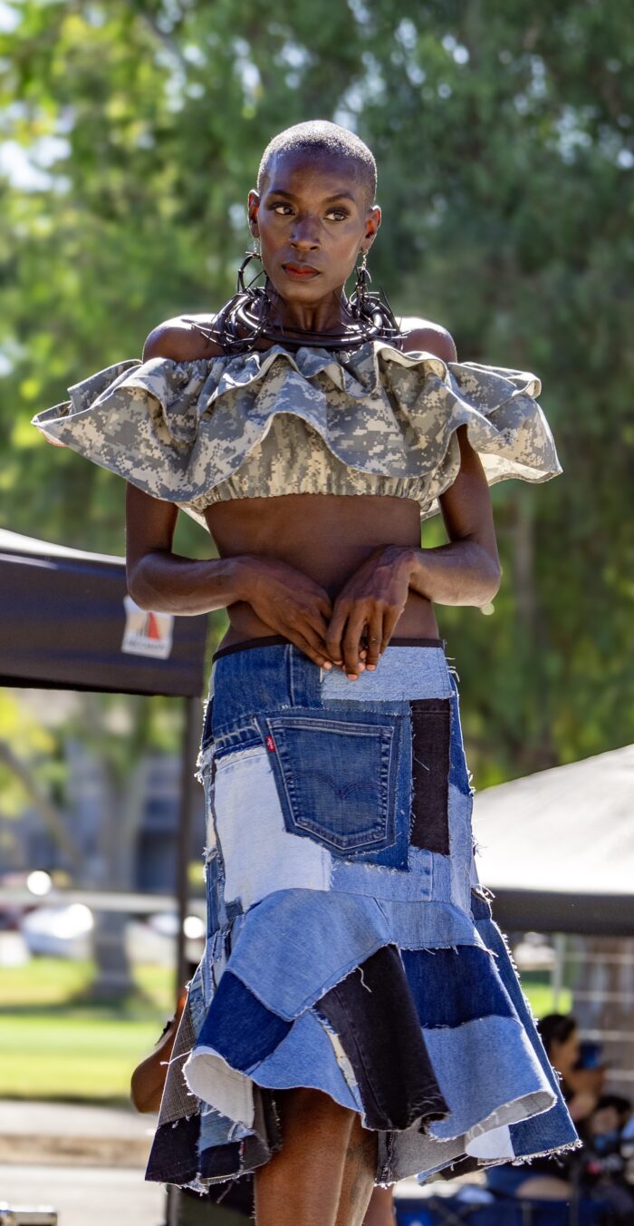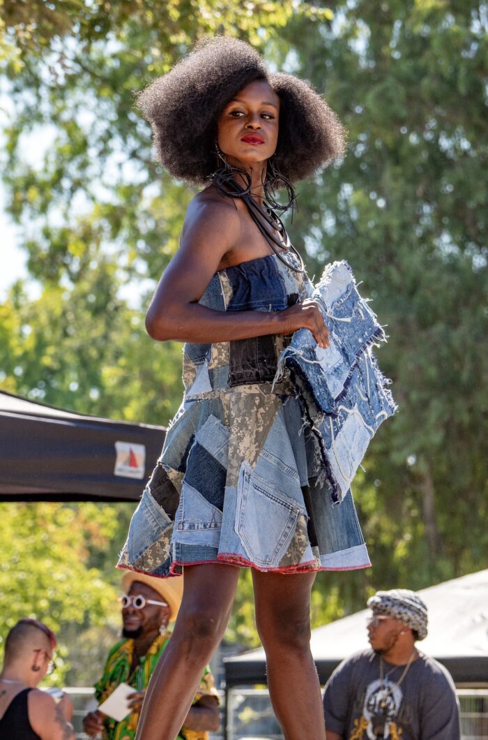 When I arrived in Sacramento in 1999, there was no fashion scene, so I put GOS” Designs East on hold. I only made clothes for myself when I wanted to go out, painting on clothing. I didn’t pursue fashion publicly again in a big way until 2017. Now, I’m not just creating clothes; I’m crafting sustainable fashion from used materials. So, who am I now? This is GOS” Art Wear. If you’re not hanging my art on your wall, hang it on your back. Again, as I mentioned, the entire GOS” Art concept allowed me to hide behind GOS” because I wasn’t sure what people thought of it. However, I had already decided that not everyone would appreciate my art and that I would focus on those who do.