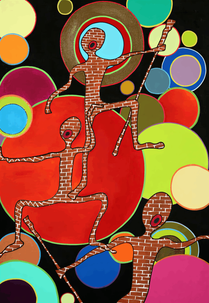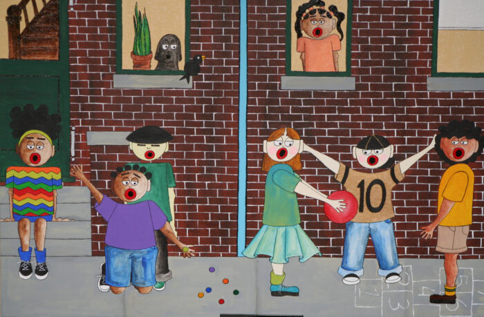 I started painting in San Jose, California. Once again, I couldn’t afford anyone else’s art, so I began channeling the energy of my children, which ultimately inspired an entire series featuring kids. I painted every night. I started showing up with my artwork, and people began to gravitate toward it. I haven’t been painting the round mouths and lips and such lately because my kids inspired those. My kids are grown and have their own children now.